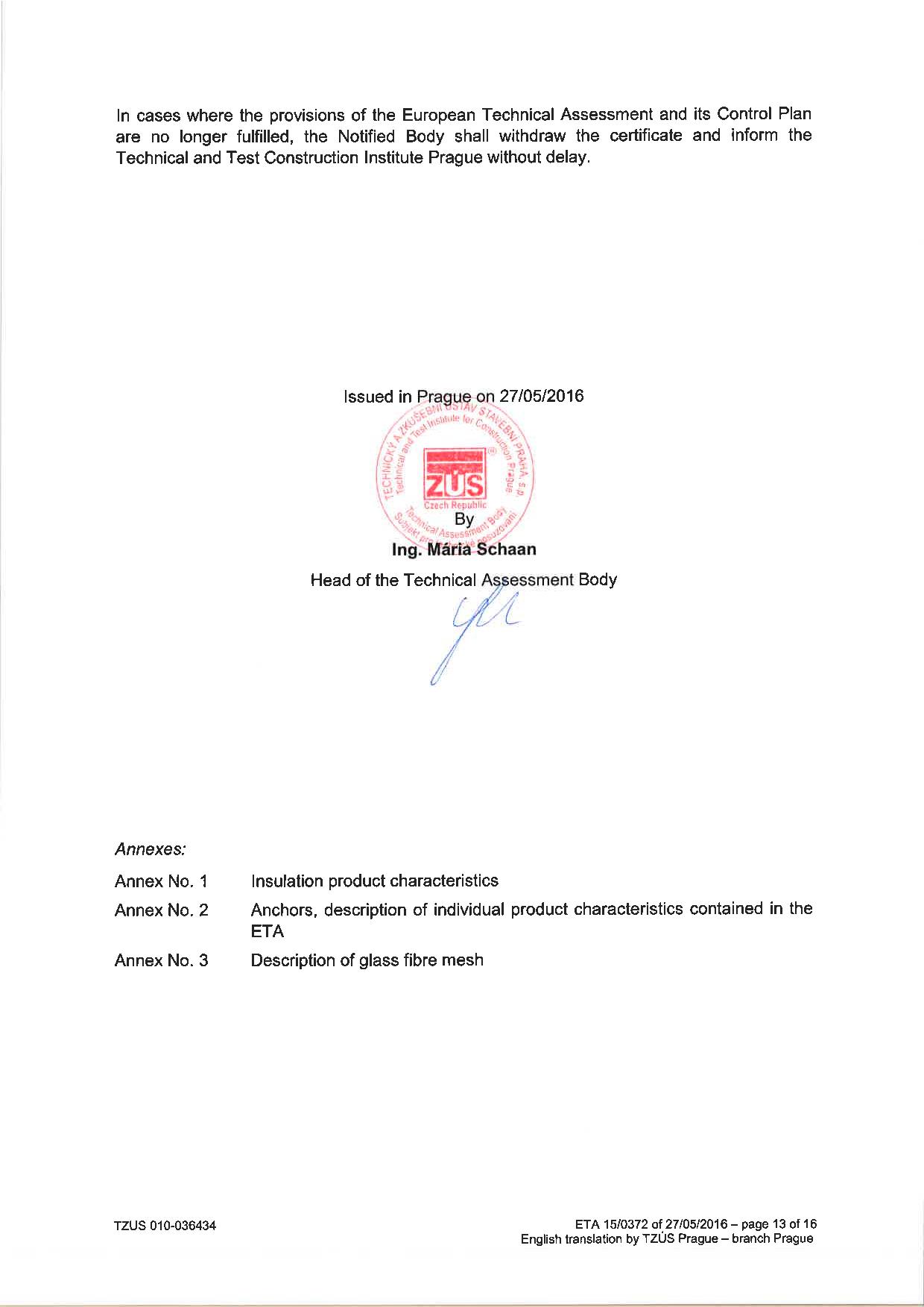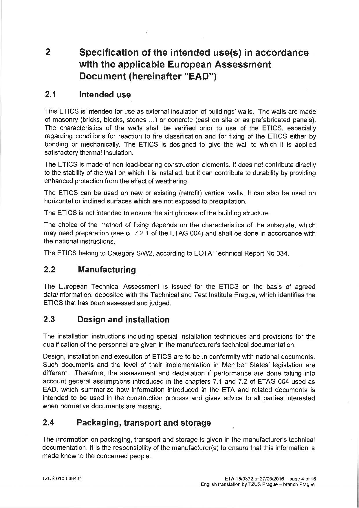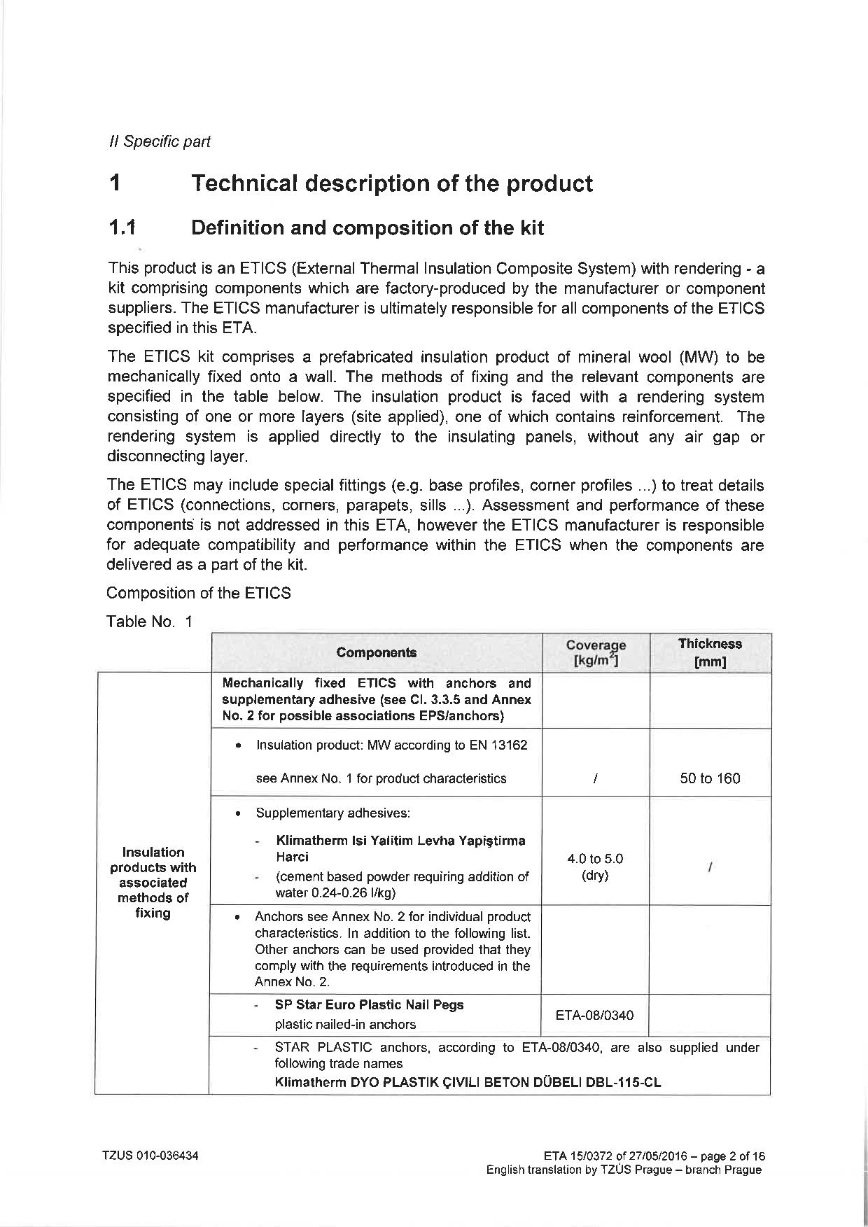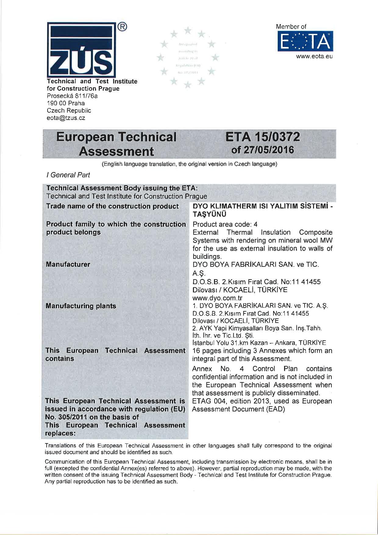 TZUS tarafından Klimatherm Taşyünü ve EPS sistemleri için onaylanmış ETAG belgesi