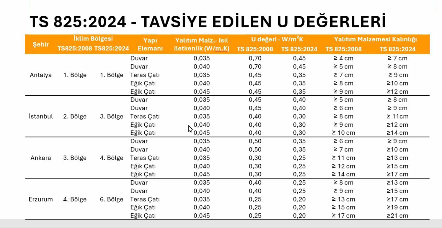 - Marmara bölgesi enerji verimliği için 10 cm iken, mevcut uygulama kalınlığı 5 cm dir.
